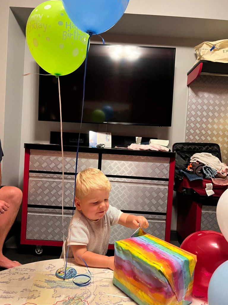 We beginnen de dag met slingers, ballonnen, en een cadeautje, want onze kleine Riff is 2!