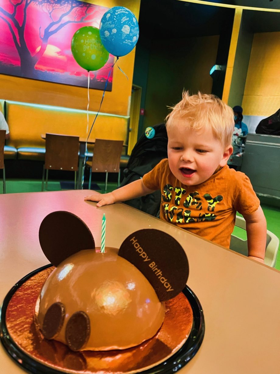 Als ontbijt bestellen we een Mickey Mouse taart mét kaarsje. Happy two ears zeggen ze hier in Disney dan.